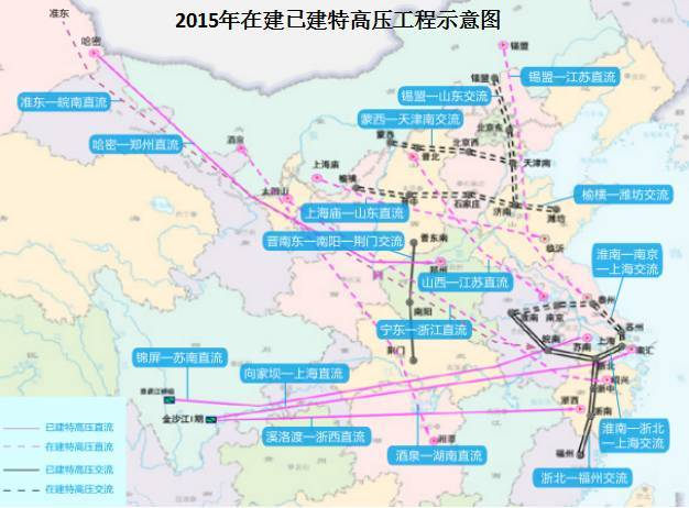 图 2015年在建已建特高压工程示意图