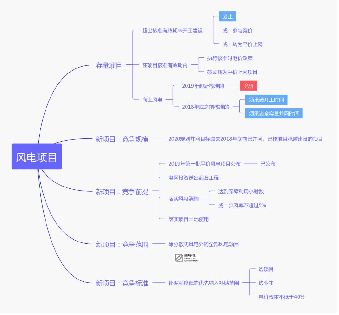 2019年5月30日,国家能源局正式发布了《关于2019年风电、光伏发电项目建设有关事项的通知》(国能发新能〔2019〕49号),与4月发布的风电光伏管理意见(征求意见稿)相比,内容作了不少简化和调整,删除了要求2018年未竞价项目全面进行竞价的要求等内容,显得更加务实和易于执行。我们根据政策内容制作了政策示意图。