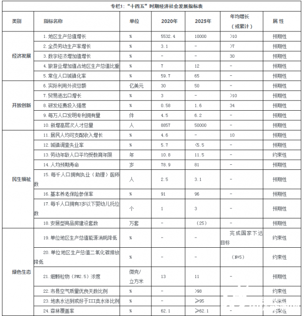 “十四五”时期经济社会发展主要目标。锚定二Ο三五年远景目标,综合考虑发展基础和发展趋势,到2025年: