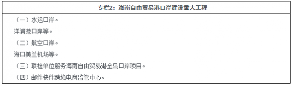 专栏2:海南自由贸易港口岸建设重大工程