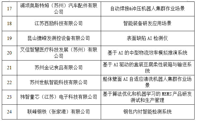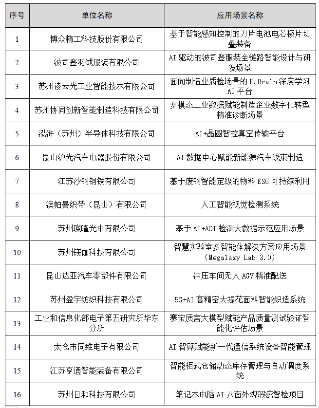 附件:首批苏州市人工智能赋能新型工业化典型应用场景名单