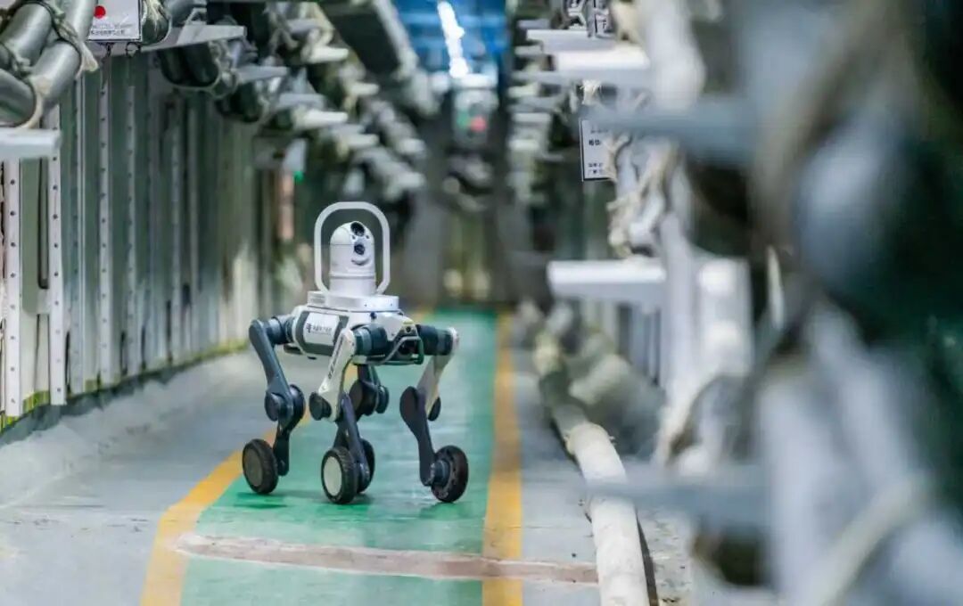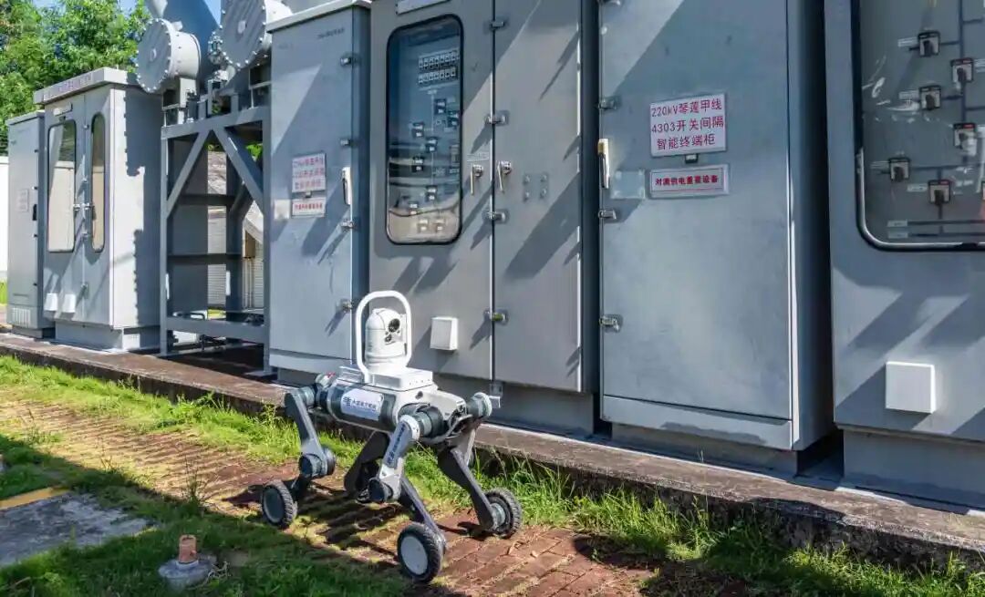 图:珠海供电局在粤澳电力联网的重要变电站、供电线路走廊等场所,广泛应用了轮式机器狗等多种国产人工智能设备开展精细化巡视等任务