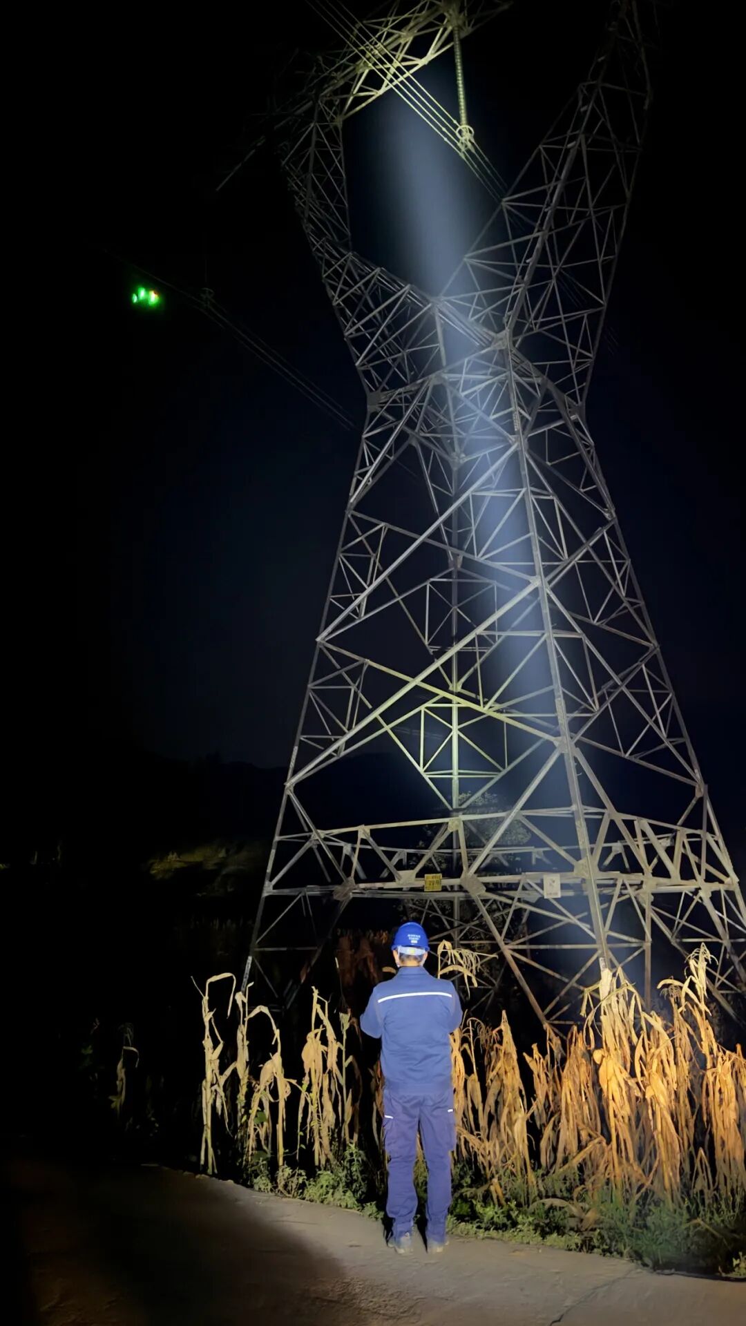 图:2025年12月3日,南方电网云南曲靖供电局组织工作人员对500千伏滇罗双回线进行夜间巡视。(吴绕永)