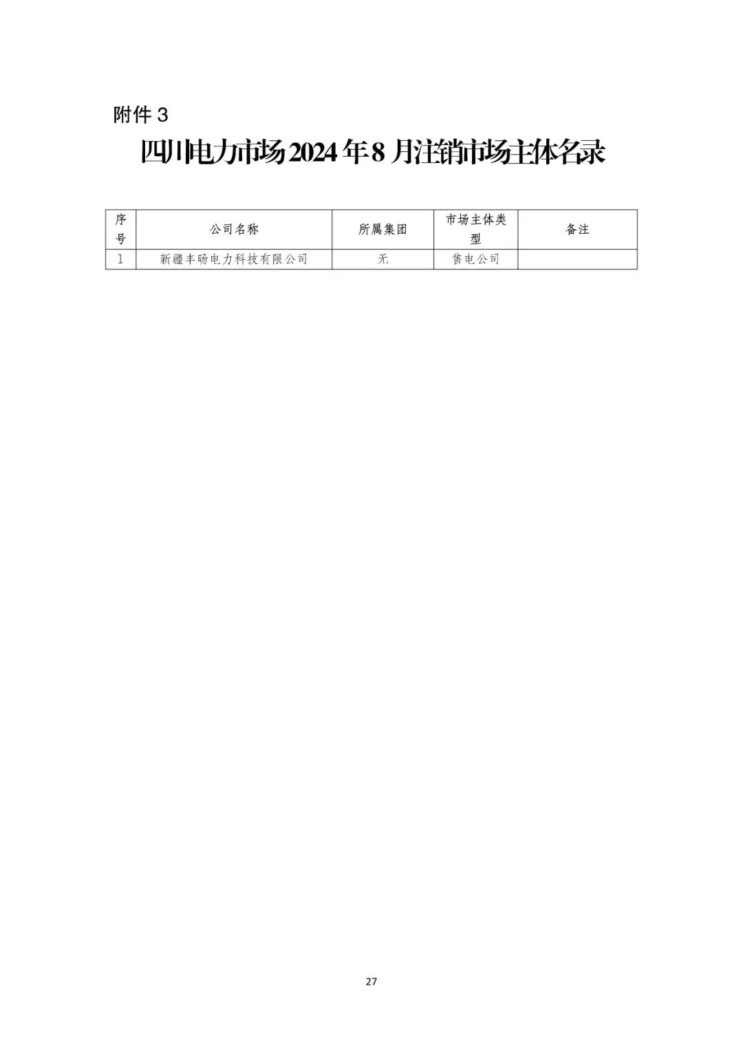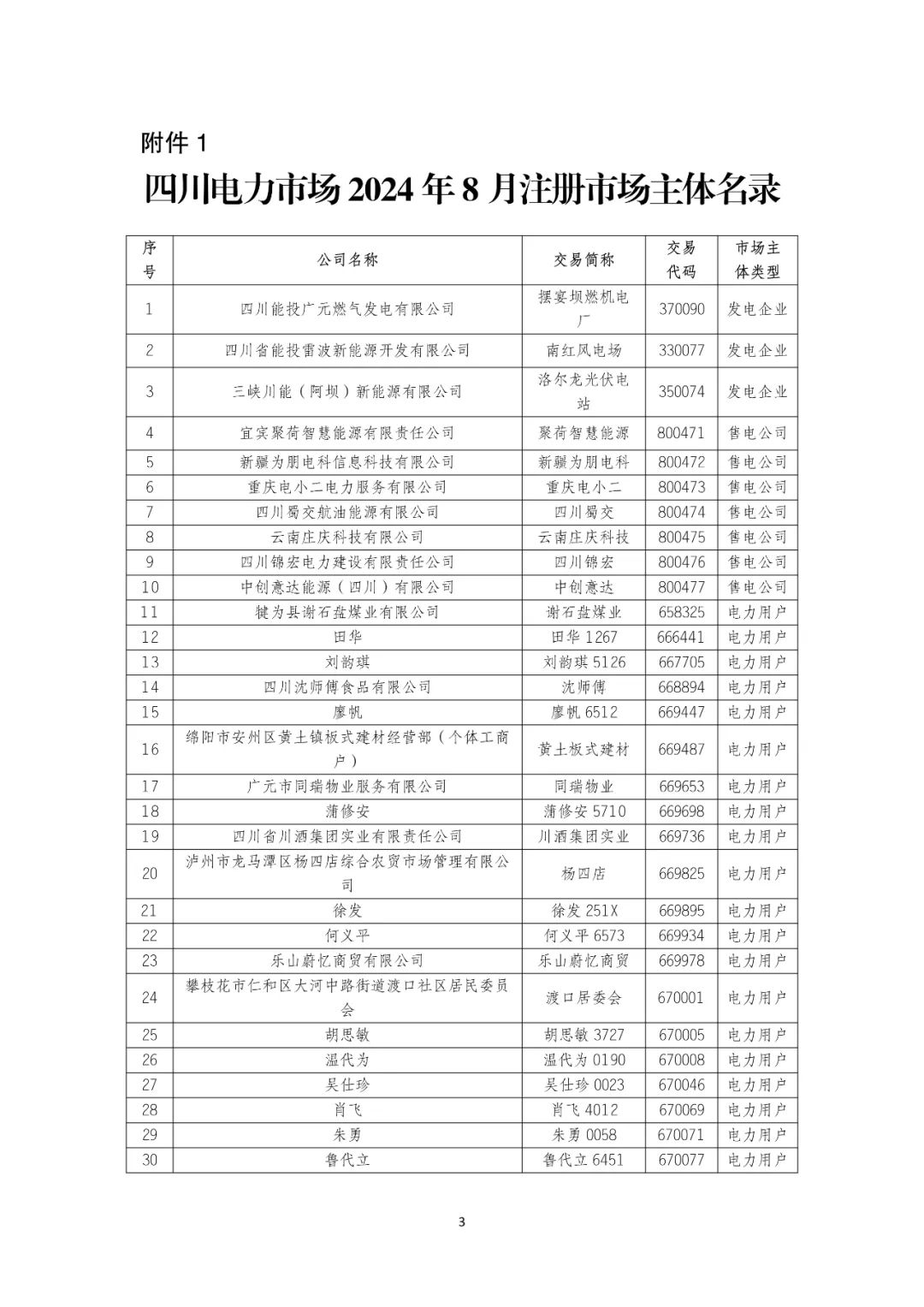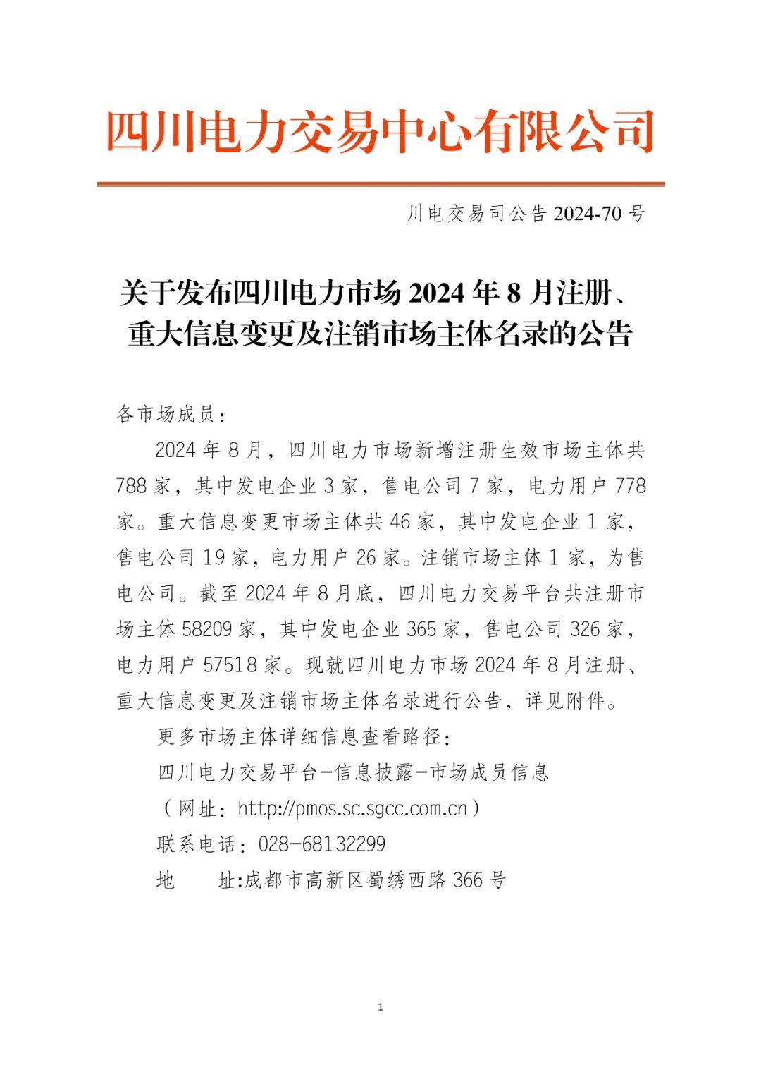 9月9日,四川电力交易中心发布《关于发布四川电力市场2024年8月注册、重大信息变更及注销市场主体名录的公告》。