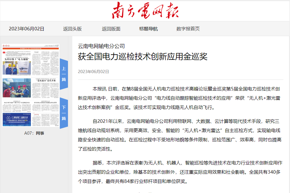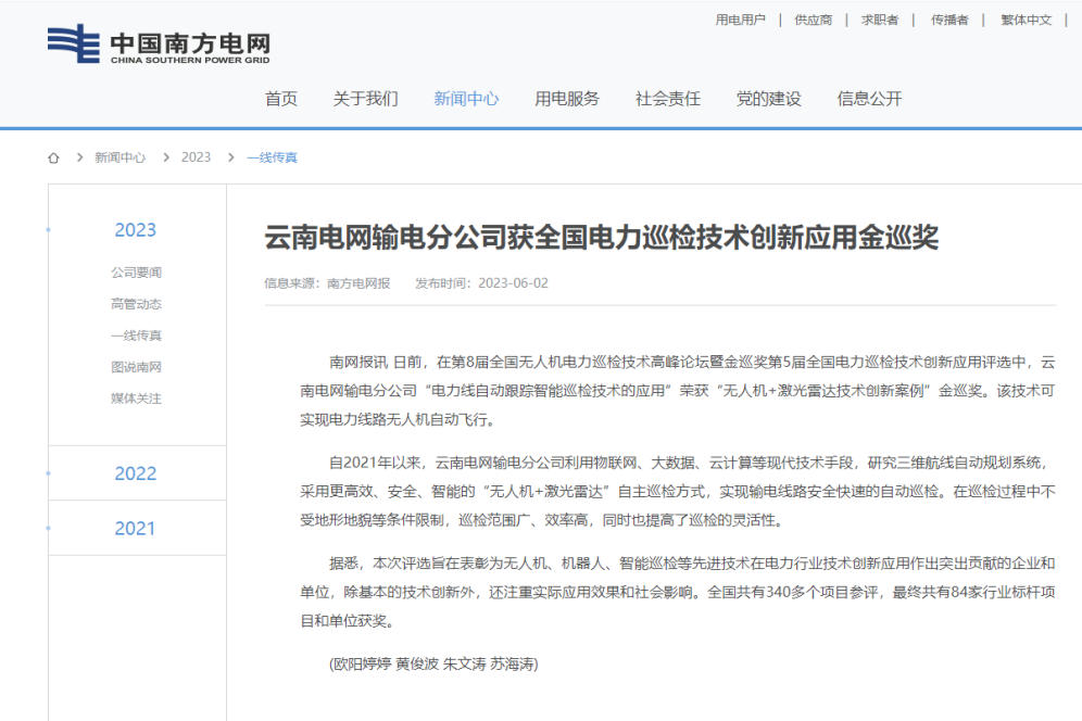 「金巡奖」全称:“全国电力巡检技术创新应用评选”,旨在表彰电力行业中在创新应用无人机、机器人、AI等新技术、新产品方面做出突出贡献的企业和单位,并为其宣传点赞。
