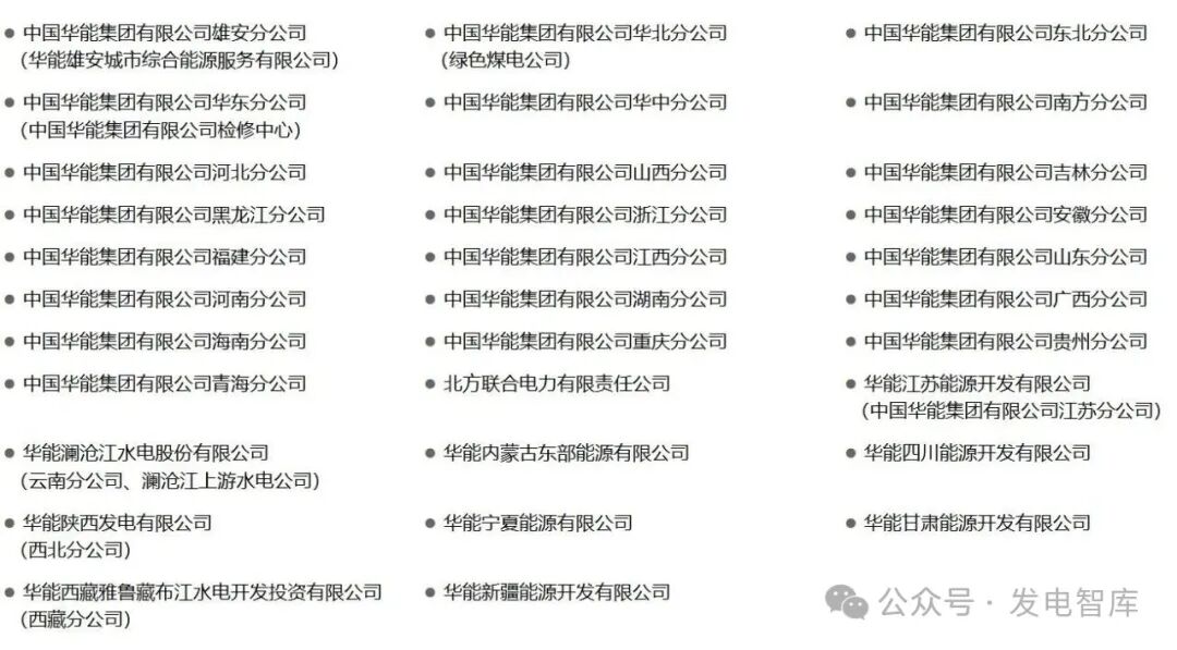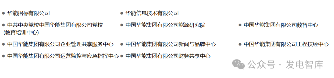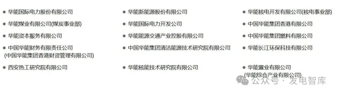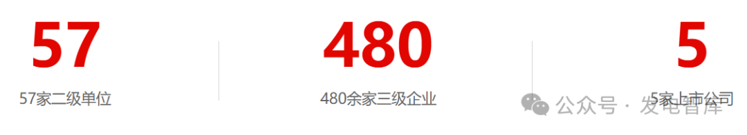 目前,拥有57家二级单位、480余家三级企业,5家上市公司(分别为华能国际、内蒙华电、新能泰山、华能水电、长城证券),职工12.3万人。