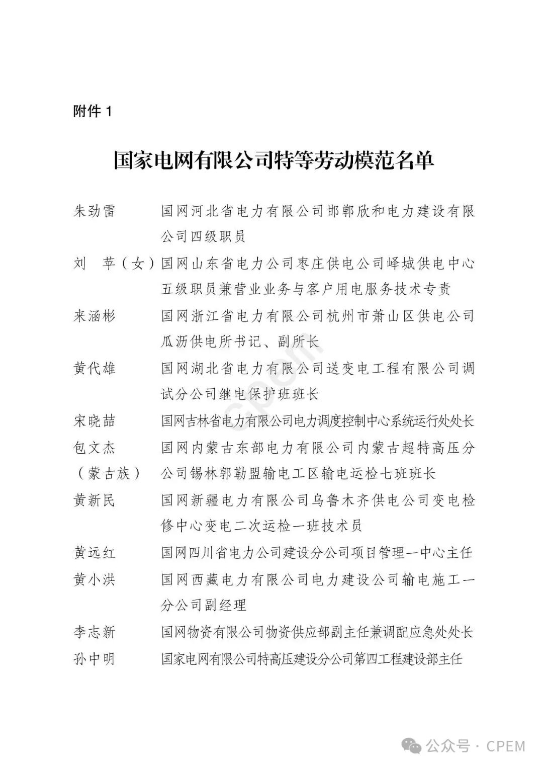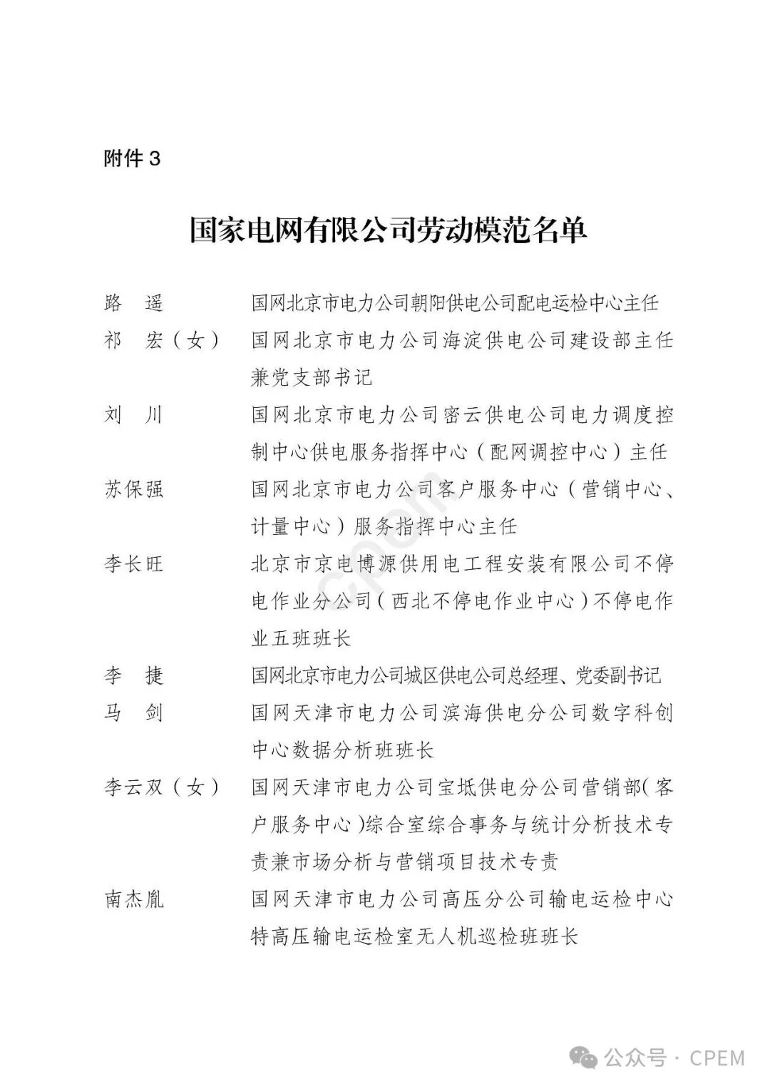 在国家电网公司“两会”上,公司表彰了劳动模范、国网工匠、先进集体和工人先锋号,授予朱劲雷等11名同志“国家电网有限公司特等劳动模范”荣誉称号;授予陈丹等22名同志“国网工匠”荣誉称号;授予路遥等165名同志“国家电网有限公司劳动模范”荣誉称号;授予国网北京市电力公司城区供电公司等110个集体“国家电网有限公司先进集体”荣誉称号;授予北京送变电有限公司调试分公司调试一班等121个班组“国家电网有限公司工人先锋号”荣誉称号