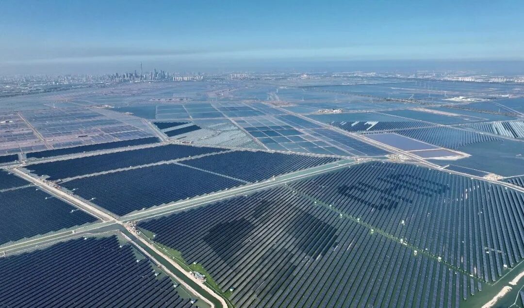 ▲华电天津海晶100万千瓦“盐光互补”光伏项目