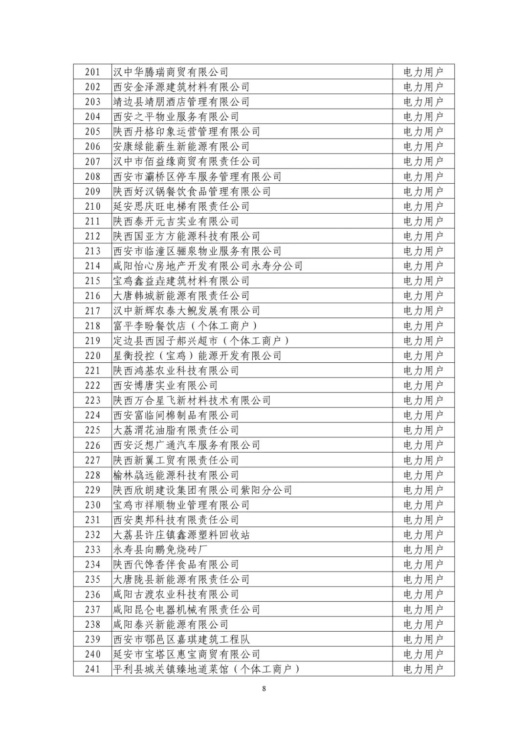 2025年8月,在陕西电力交易平台完成注册的经营主体共543家,其中售电公司15家,电力用户523家,发电企业5家。累计注册经营主体共18425家。