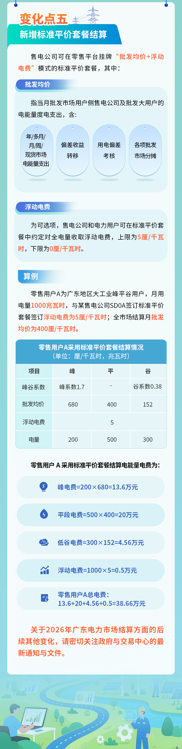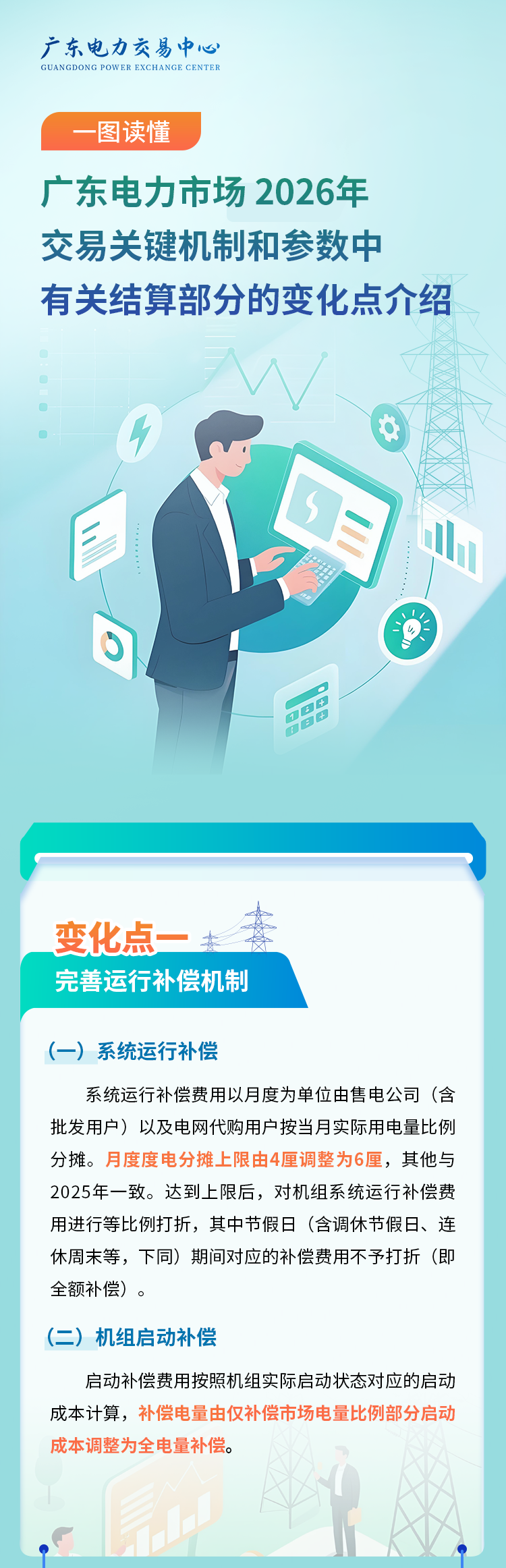 一图读懂广东电力市场2026年交易关键机制和参数中有关结算部分的变化点介绍,详情如下: