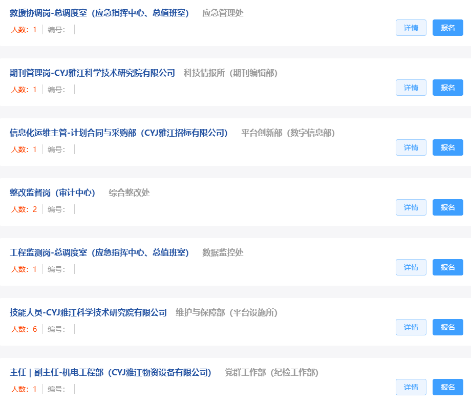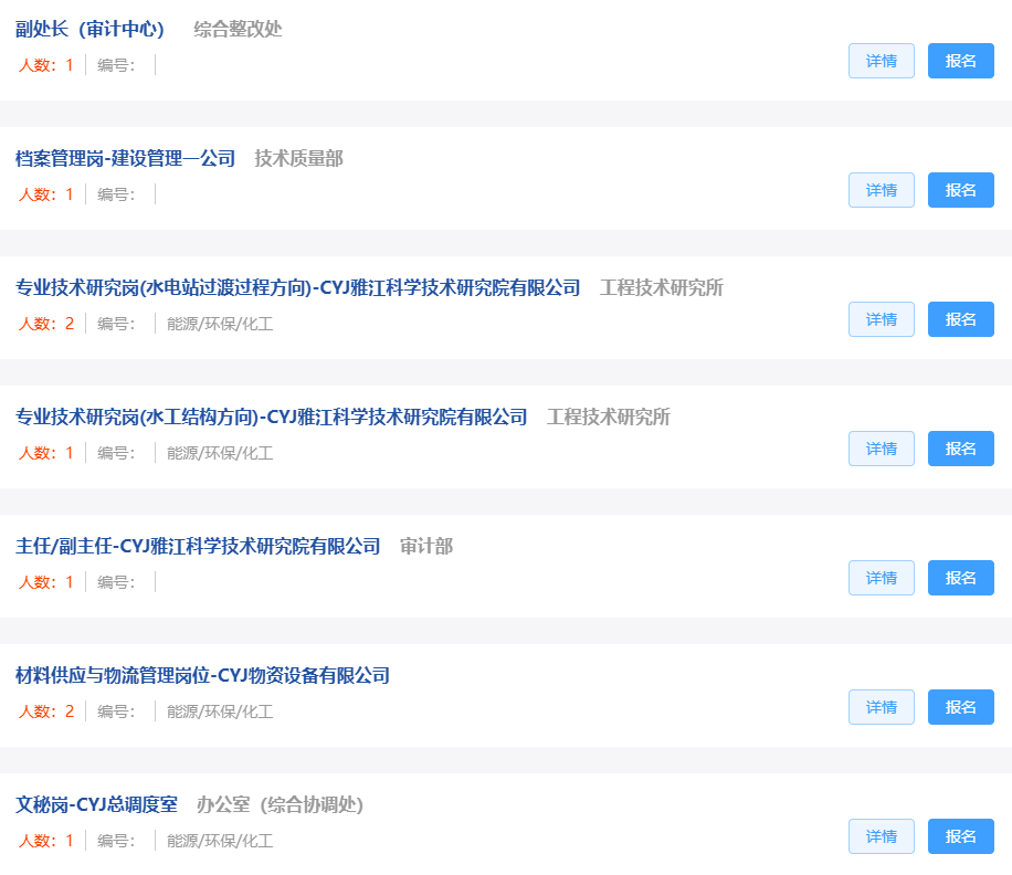 雅江集团已正式启动招聘,计划涵盖工程建设、项目管理、物资招标、新能源、生态环保、职能管理等多个方向,共设置岗位156个,拟招聘178人。